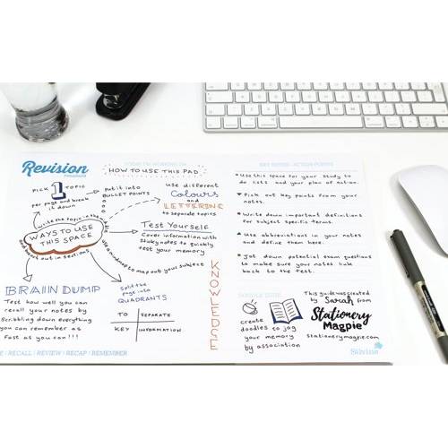 - This Luxpad Revision Desk Pad from Silvine measures 360 x 230mm and features 48 pre-printed page templates designed for revision notes, key notes, action points and much more. The handy 'how-to' inner cover, designed with blogger Stationery Magpie helps to support revision goals. Perfect for exam preparation, these pads are supplied in a pack of 5.