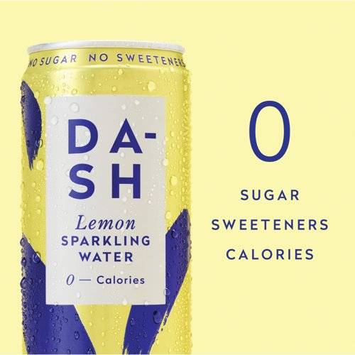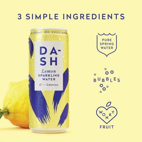 - When life gives us wonky, misshapen lemons, we do not throw them away. We make delicious lemon sparkling water. Natural and sustainable, our lemon flavoured sparkling water is infused with real lemons, creating a tasty drink that is calorie, sugar and sweetener free. Fresh fruit and spring water are what make DASH drinks so light and refreshing, all the while helping the environment. Serve our delicious lemon sparkling water over ice in a tumbler when you are feeling fancy, or crack open an ice cold can when you are on the go. Lemon is an all-around crowd favourite, so you cannot go wrong with stocking these cans in your fridge.