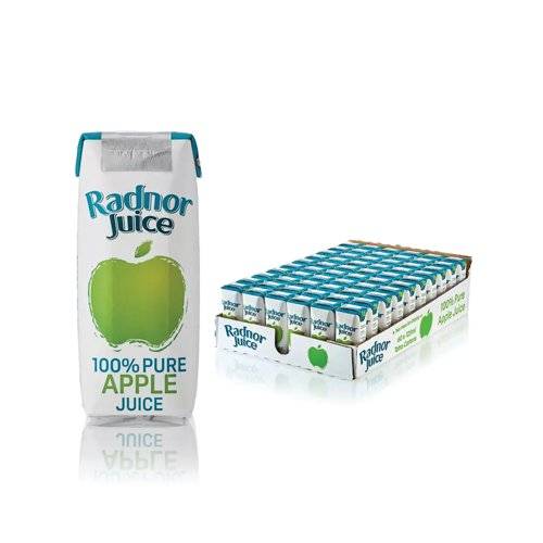 - Radnor Juice contains 100% real fruit juice from Concentrate, (one apple per 125ml). Fully school compliant, Radnor have been working with schools for 25 years producing drinks that children love whilst also meeting their strict nutritional guidelines. Helping children stay hydrated whilst doing the things they love, this pure fruit juice drink is free from sugar, artificial flavours, colourings and preservatives. Featuring pull-tab technology, thus eliminating the need for plastic straws, this pack contains 60 tetra cartons, each containing 125ml.