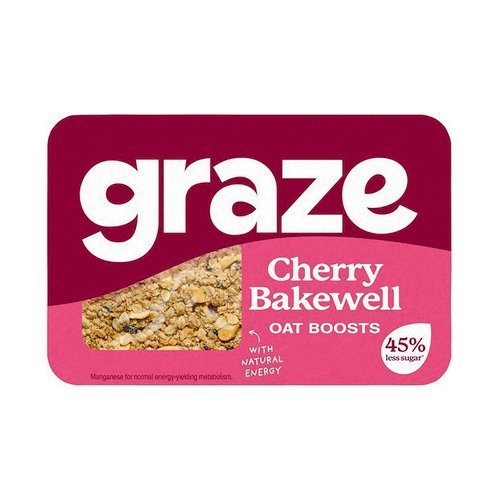 - Graze Cherry Bakewell Fibre Flapjack punnet is a handy snack pack with wholegrain oat flapjack with cherries and almonds. Made without artificial colour flavour or preservatives. 53g punnet. Pack of 9.