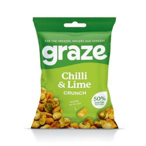 - Graze Chilli and Lime Crunch 35g pack with chilli and lime seasoned broad beans corn and coated peas. An intensely flavoured light and crunchy crisp alternative packed with vegetables. Supplied in a pack of 10.