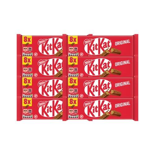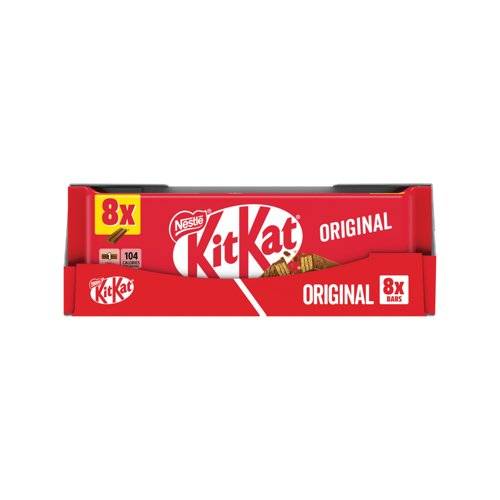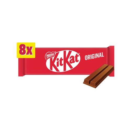 KitKat fingers of slender wafer, sandwiched together with chocolate cream and coated with a layer of smooth milk chocolate. Light yet luxurious, they combine crunch and softness in a yummy treat. Free from artificial colours, flavours or preservatives, this is the perfect solution for that mid-afternoon dip. Supplied in a pack of 8.