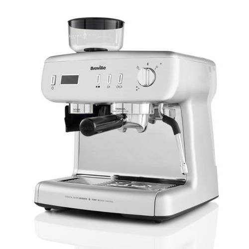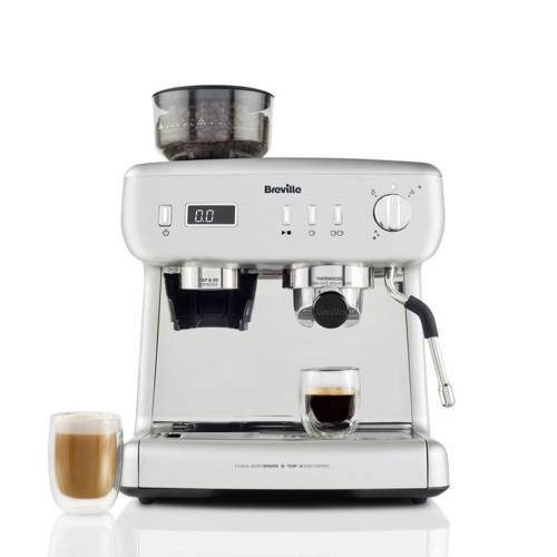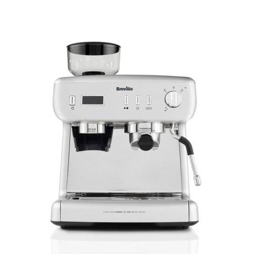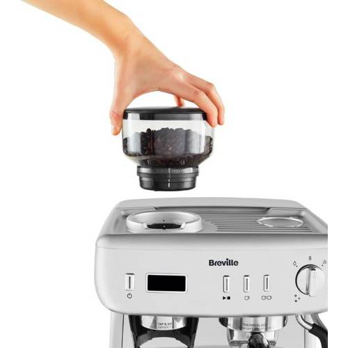 - Enjoy delicious coffee just like it tastes at your favourite café with the Breville Barista Max+ Espresso Machine with integrated bean grinder that's perfect for lattes, cappuccinos and more. Designed to remove the guesswork, the Barista Max+ grinder is intelligently programmed to provide feedback for the correct amount of coffee grounds for 1 or 2 shot dosage, while the LED screen displays your extraction time, allowing you to time your optimum extraction for a perfect espresso. Inspired by commercial espresso machines, the Barista Max+ offers all the features and accessories needed to enjoy café-style coffee at home, including a powerful steam wand that creates velvety microfoam milk for delicious lattes, flat whites and cappuccinos.