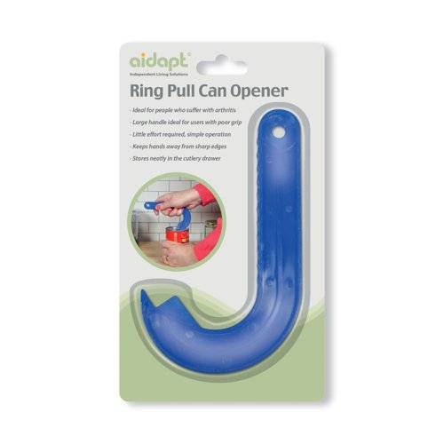 - This compact and lightweight kitchen aid is ideal for users with a weakened grip or limited dexterity, as well as those who want to avoid damaging their nails when opening tins and cans. The Ring Pull Opener simply hooks under the edge of the ring pull and, with a simple pulling motion on the comfortable handle, allows you to easily peel back the ring pull and lid together. It will fit neatly into your cutlery drawer when not in use and also features a hanging loop in the handle.