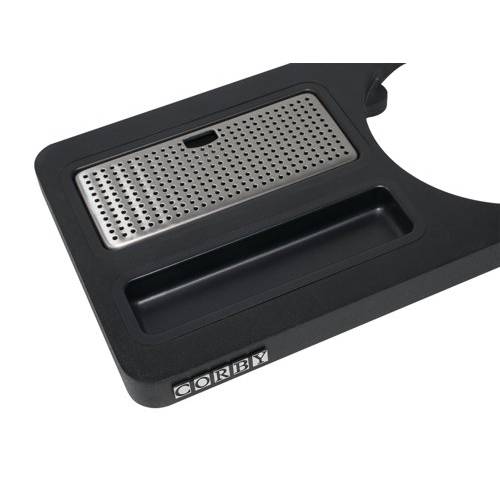 - Enhance your guest room drinks experience with the Buckingham Compact Welcome Tray in black. Designed to perfectly accommodate our classic Corby Buckingham kettle, this sleek tray features a built-in sachet holder and an integrated drip tray for added convenience. Made from solid wood, the tray is eco-friendly, providing a sustainable option without compromising on style or durability. Easy to clean and designed with both functionality and sustainability in mind, this welcome tray is the perfect addition to any guest room.