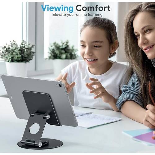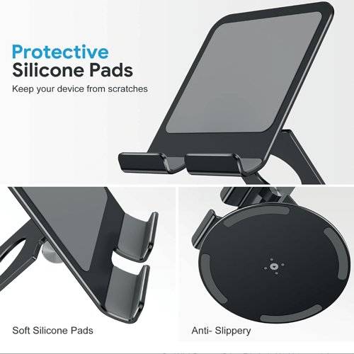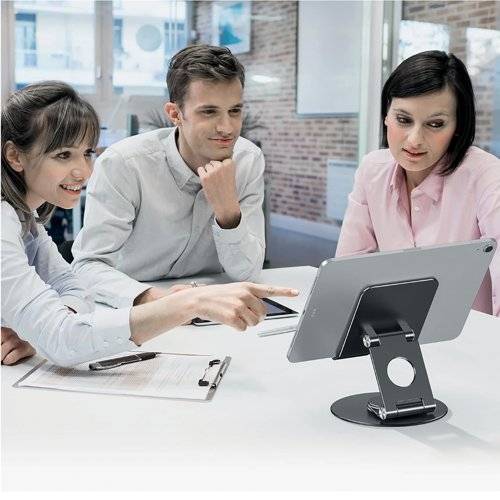 - Hinged tilting and rotating aluminium tablet/mobile phone stand suitable for tablets/phones from 4 inch - 13 inch in black