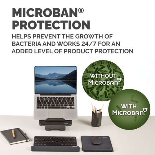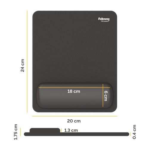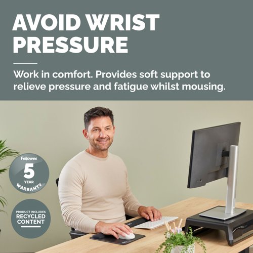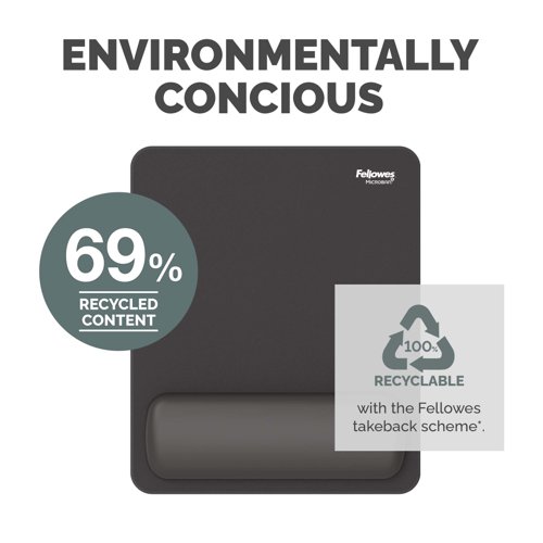 - Experience all-day comfort and enhanced performance with the Fellowes Breyta™ Mouse Mat Wrist Support. Designed to conform to your wrist, it helps relieve pressure and fatigue during extended computer use. The soft-touch wrist rest features an anti-dust coating for a premium feel and seamless mousing experience. Made with Microban® antibacterial technology, this mat offers continuous hygienic protection, making it ideal for shared or high-use workspaces. Compatible with both optical and laser mice, the Breyta™ mouse mat wrist protects your desktop while boosting precision. Made from 69% post-consumer recycled content and fully recyclable through the Fellowes takeback scheme*. This mouse mat combines ergonomic support and hygiene into one.