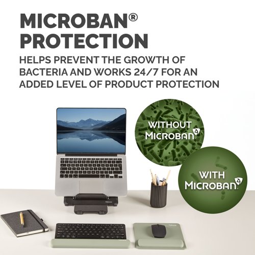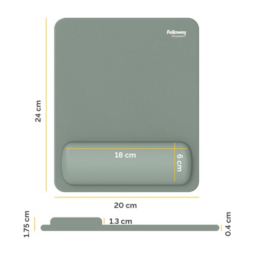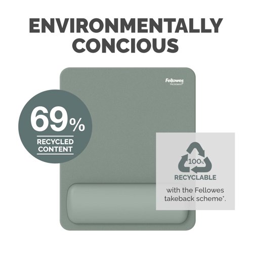 - Experience all-day comfort and enhanced performance with the Fellowes Breyta™ Mouse Mat Wrist Support. Designed to conform to your wrist, it helps relieve pressure and fatigue during extended computer use. The soft-touch wrist rest features an anti-dust coating for a premium feel and seamless mousing experience. Made with Microban® antibacterial technology, this mat offers continuous hygienic protection, making it ideal for shared or high-use workspaces. Compatible with both optical and laser mice, the Breyta™ mouse mat wrist protects your desktop while boosting precision. Made from 69% post-consumer recycled content and fully recyclable through the Fellowes takeback scheme*. This mouse mat combines ergonomic support and hygiene into one.