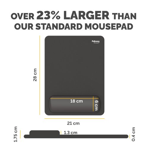 | 23% larger than Fellowes's standard mousepad wrist rest |