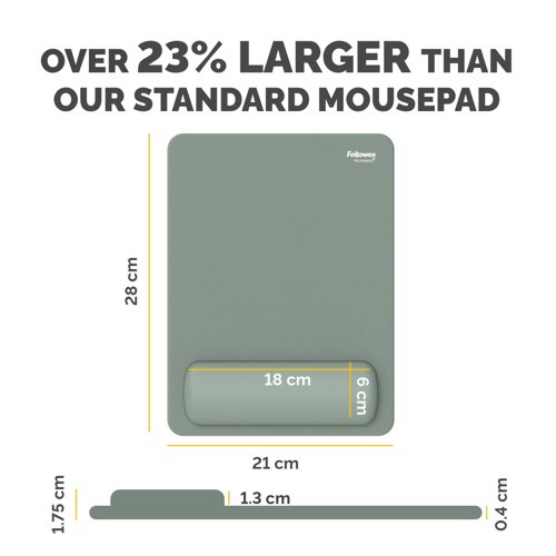 | 23% larger than Fellowes's standard mousepad wrist rest |