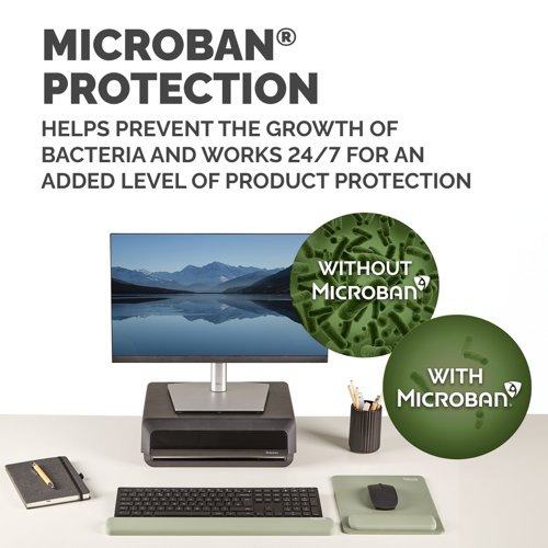 Experience all-day comfort and enhanced performance with the Fellowes Breyta™ XL Mouse Mat Wrist Support. Designed to be 23% larger than standard wrist rests, it encourages greater movement and helps reduce small repetitive motions that can lead to wrist strain. The wrist support conforms to your wrist for personalised comfort, helping to relieve pressure and fatigue during extended computer use. Featuring a soft-touch, anti-dust coated surface, it delivers a smooth and premium mousing experience. Made with Microban® antibacterial technology, the Breyta™ XL Mouse Mat Wrist Support provides continuous hygienic protection, making it ideal for shared or high-use workspaces. Compatible with both optical and laser mice, it enhances tracking performance while protecting your desktop. Made from 74% post-consumer recycled content and fully recyclable through the Fellowes takeback scheme*. This mouse mat combines ergonomic support and hygiene into one.