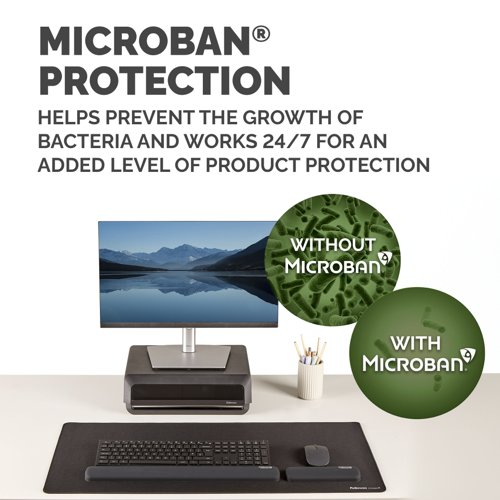 Experience all-day comfort and enhanced support with the Fellowes Breyta™ Palm Rest. Designed to conform to your wrist, it helps relieve pressure and fatigue while typing and mousing, making it ideal for long work sessions. The soft-touch, anti-dust coated surface delivers a premium finish and smooth mousing experience. Made with Microban® antibacterial technology, it offers continuous hygienic protection, perfect for shared or high-use environments. Its lightweight, compact design makes it easy to carry, supporting hybrid working without compromising on comfort. Fully recyclable through the Fellowes takeback scheme*. The Breyta™ Palm Rest is a practical addition to any workspace.