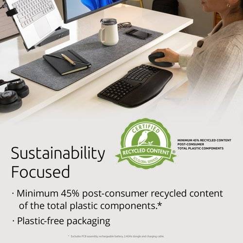 | Features a minimum 45% post-consumer recycled content (PCR) of the total plastic components. *Excludes PCB assembly, rechargeable battery, 2.4GHz dongle and charging cable. |