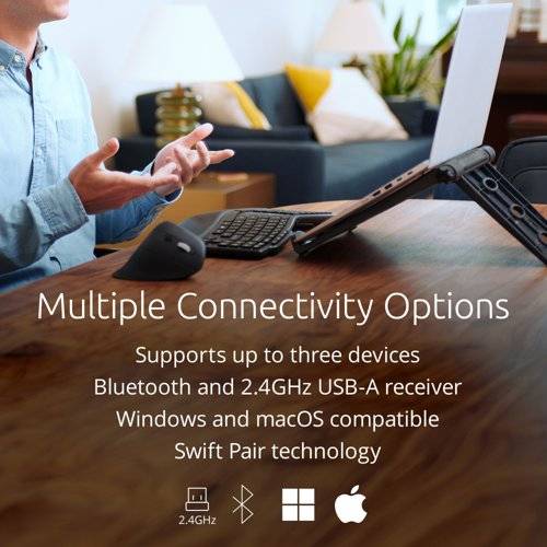 | Supports up to three devices- two via Bluetooth® connections and one via the 2.4GHz USB-A receiver. |
