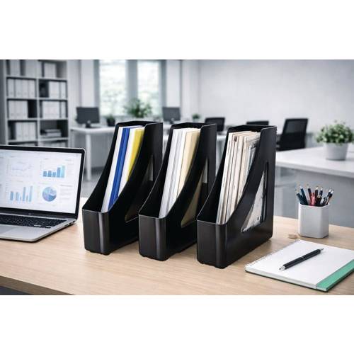 Introducing the 5 Star Set of Magazine Files - the perfect solution for keeping your magazines, catalogues, and papers organized in style. These magazine files add a touch of sophistication to any workspace.