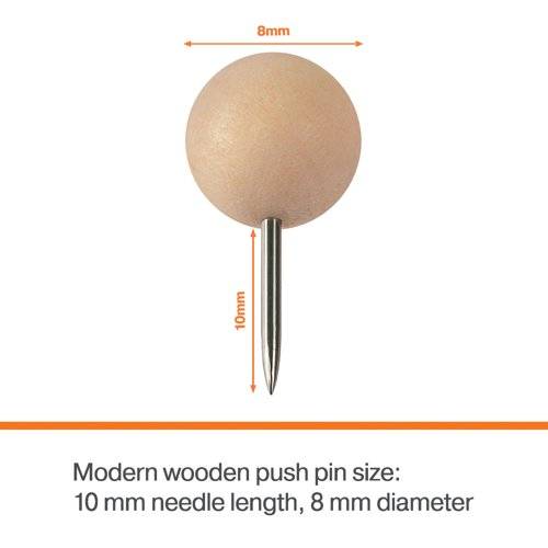 | Modern wooden push pin size: 10 mm needle length, 8 mm diameter |