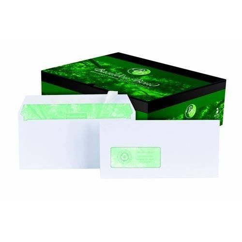 Delivers the quality you would expect from Basildon Bond to project a professional image for your business. Made from superior 100gsm bright white 100% recycled paper. The window film is 100% biodegradable.