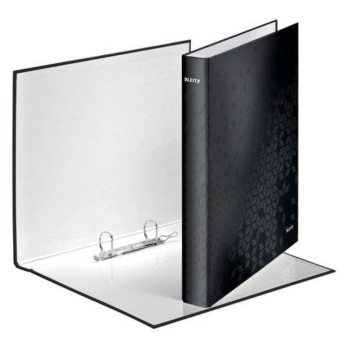 - Part of the vibrant WOW range, this Leitz ring binder is made from durable board, covered in bright, glossy paper. The binder features a standard 2 D-ring mechanism with a 25mm capacity for filing up to 230 sheets of A4 80gsm paper. The A4 plus size helps keeps contents protected, with each binder measuring W40 x D275 x H318mm. Ideal for colour coordinated filing, this pack contains 10 black ring binders.