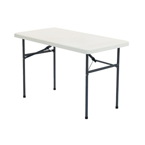 The Hoya range of blow moulded tables have a easy to clean blow moulded off white top with rounded edges mounted onto a study steel folding frame. The folding mechanism make for easy transportation and set up.