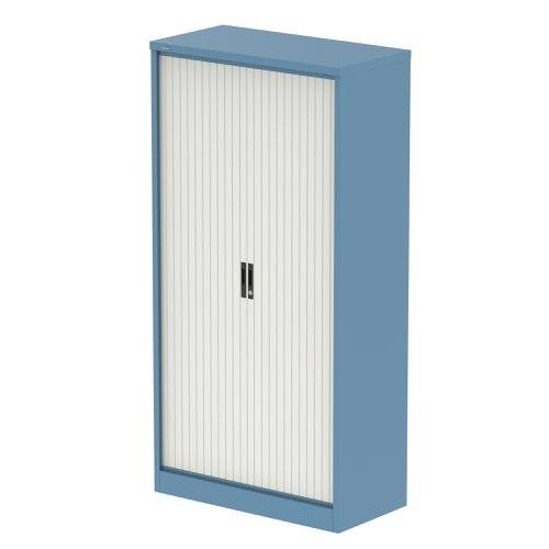 Qube 2000mm Side Tambour Cupboard Pastel Blue And Satin White With Shelves