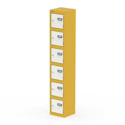 Qube Locker 6 Door 1800mm High Lemon Yellow And Satin White