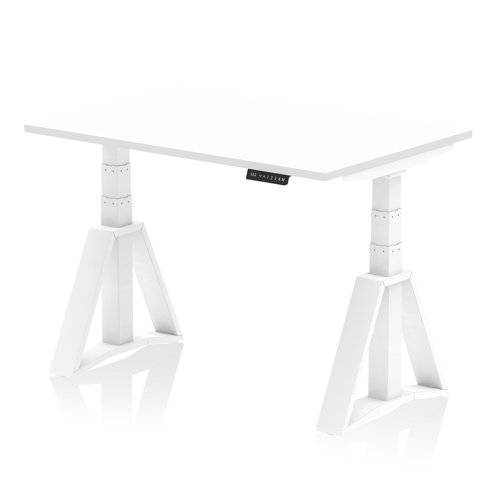 Air 1200 x 800mm Height Adjustable Office Desk White Top White Leg with Piste Foot