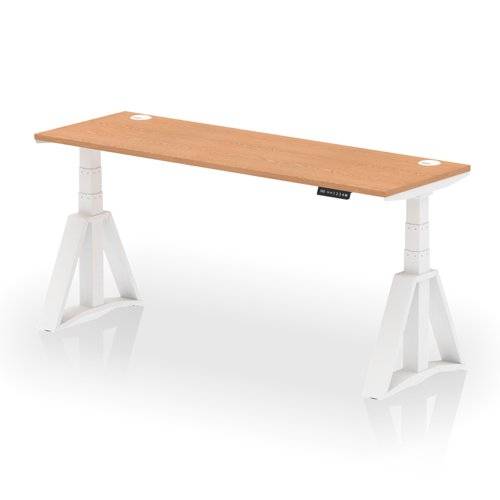 Air 1800 x 600mm Height Adjustable Office Desk Oak Top Cable Ports White Leg with Piste Foot