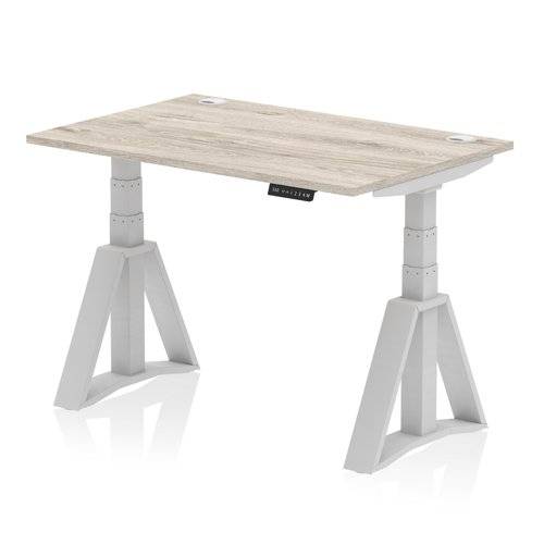 Air 1200 x 800mm Height Adjustable Office Desk Grey Oak Top Cable Ports Silver Leg with Piste Foot