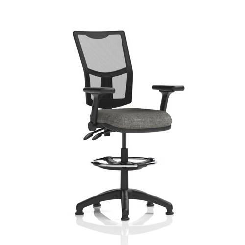 Eclipse Plus II Lever Task Operator Chair Mesh Back With High Rise Draughtsman Kit With Height Adjustable And Folding Arms Charcoal