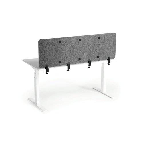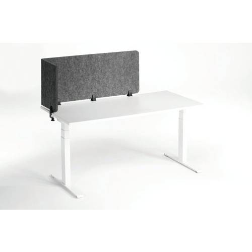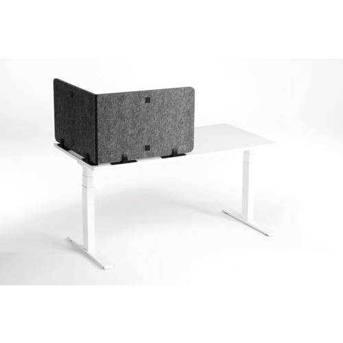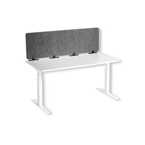 - The Durable Desk Divider Panel in grey provides effective acoustic and visual protection in busy workspaces, promoting a calm and focused atmosphere. Its sustainable design features 60% recycled PET felt, combining environmental responsibility with modern style. This desk divider helps define personal spaces, reduce noise distractions and improve concentration in offices, libraries, and collaborative environments. Flexible and adaptable, the panel's infinitely adjustable angles let you create the perfect setup for your needs. Its easy-to-mount system includes desk clamps, table bases and can also be freestanding at 90 degrees, making it an ideal choice for any professional setting. Tested and certified to meet high safety standards, including flame retardancy and low emissions, the panel is built to last and ensure a healthier workspace. Designed in Germany with a commitment to quality, this desk divider is the ultimate solution for contemporary and sustainable office environments.