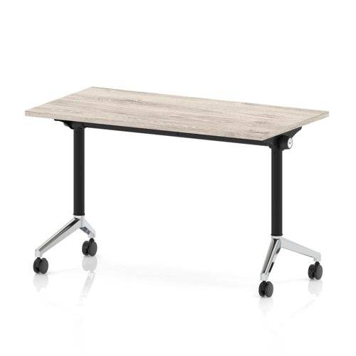 Impulse Plus Flip Top 1200 x 600mm Slimline Rectangular Table With Chrome Foot Grey Oak Top