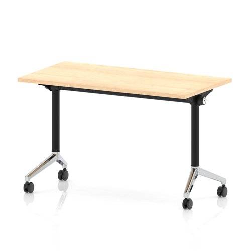 Impulse Plus Flip Top 1200 x 600mm Slimline Rectangular Table With Chrome Foot Maple Top