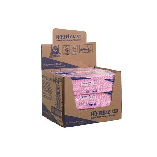 Wypall X50 Cleaning Cloths Absorbent Strong Non-Woven Tear-Resistant Red Pack 50