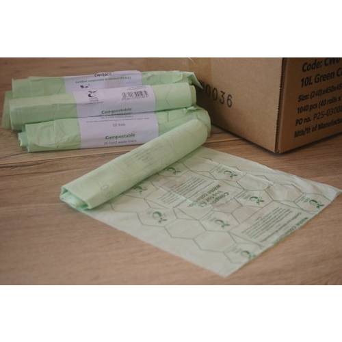 - Good waste management and recycling methods help to support a cleaner, greener planet, preventing unnecessary items being sent to landfill where they struggle to decay. Almost all food waste is recyclable and when it is recycled, it has the ability to breakdown and over time produce compost. These 10 litre capacity, compostable, food waste bin liners, in pale green, visually signal compostability, helping to distinguish them from conventional plastic liners. This pack contains 40 rolls of 26 liners (1,040 liners in total).