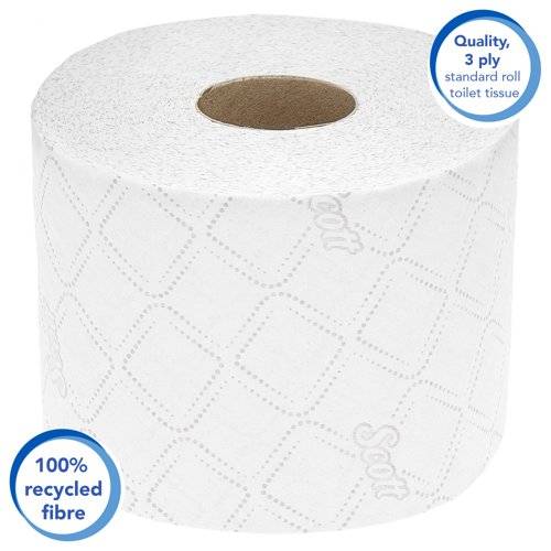 - Scott Control Toilet Tissue Standard Roll 3-Ply are triple comfort soft and absorbent. Suitable for wall mounted toilet roll dispensers. Reliable flushability. 100% recycled fibre. Colour: White. 300 sheets per roll.