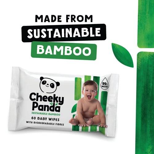 - Cheeky Panda Biodegradable Bamboo Baby Wipes are the perfect soft and gentle way to clean your baby's delicate skin. Wipes contain only natural ingredients. Free from plastic and microplastics. 99% purified water and 1% Aloe Vera. Vegan and Cruelty Free. Each packet contains 60 wipes. 12 packs supplied.