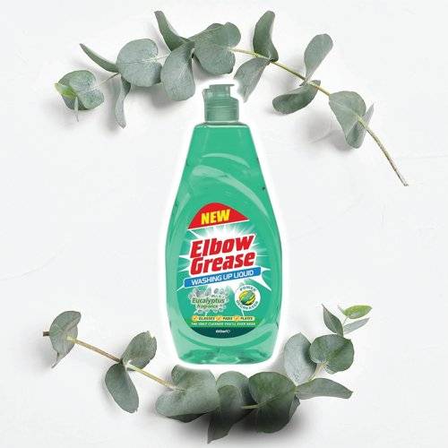 - The ultimate power degreasing properties of the new Elbow Grease washing up liquid will make washing up a delight in your home. This powerful washing up liquid degreases pots and pans, and removes stubborn food deposits in no time. The scent and superb lather makes easy and pleasant work of washing up.