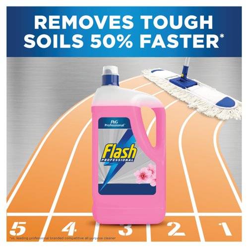 - Flash Professional All Purpose Cleaner Cherry Blossom is a hardworking formulation designed to cut through grease, dirt and grime. Suitable for a wide range of surfaces including floors, countertops and kitchen worktops, the formula is effective in all water conditions, leaving a floral scent behind. Supplied in pack of two 5 litre bottles.