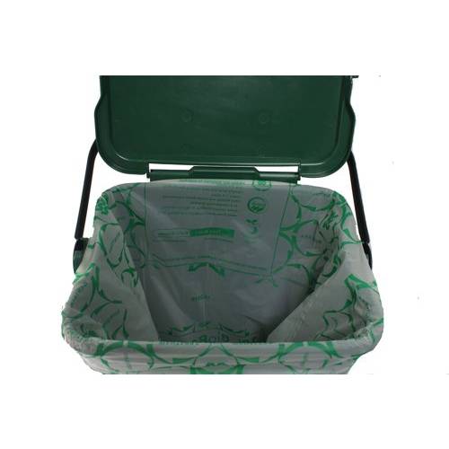 - This 10 litre kitchen food waste bin with lid features a lid lock mechanism. Made by injection moulded polypropylene which has 75% recycled content. Supplied in green, the bin measures: W260 x D220 x H275mm.