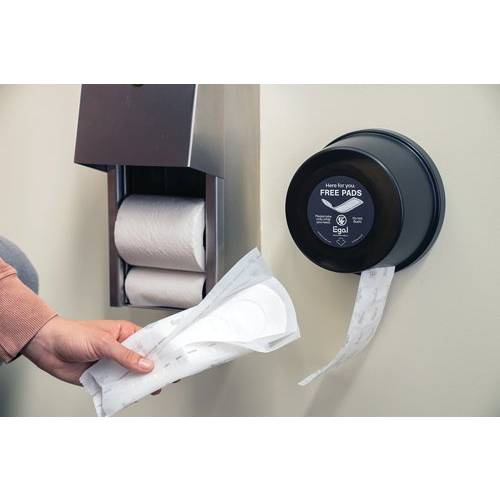 - These black dispensers are perfect for supplying pads on a roll. Both compact and easy to refill, they can be placed directly inside the cubicle, straight next to the toilet roll. The Pads on a Roll dispenser is durable, designed for high-footfall environments, using a simple refill mechanism that reduces maintenance time. Its sleek profile fits discreetly inside any cubicle, ensuring consistent, hygienic access while keeping facilities teams' workloads low. Supplied in a pack of 5.