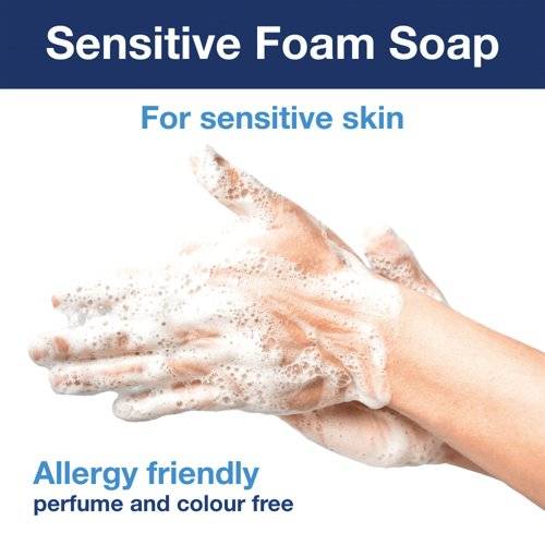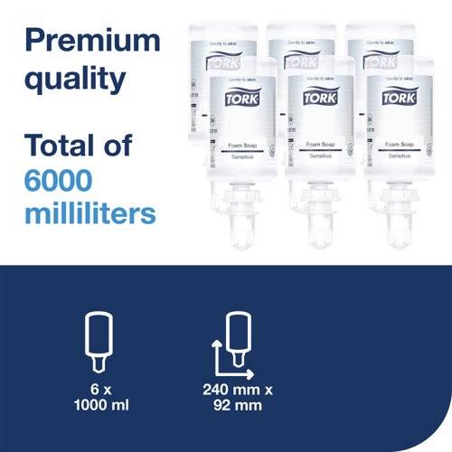 - For use in Tork form dispensers, this extra mild foam hand soap is perfume free and colourless to help reduce the risk of skin irritation for sensitive skin. The foam solution lathers quickly, is cost-effective and designed to be longer lasting than liquid hand soap. The extra mild soap is dermatologically tested and suitable for everyday use. The sealed bottle collapses after use to help reduce waste volumes. Each 1 litre refill bottle lasts for up to 2,500 washes. This pack contains 6 refills.