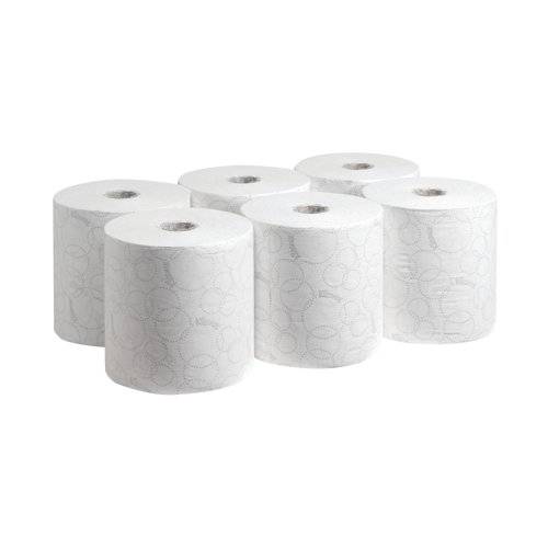 This premium Kleenex Ultra Hand Towel Roll provides a quality, caring hand drying experience for use in shared washrooms. Made using unique AIRFLEX technology, the 2-ply roll is soft and highly absorbent. Each embossed roll contains 600 sheets and is 150m long. For use with Aquarius hand towel dispensers (7375 and 7376), this pack contains 6 white rolls.