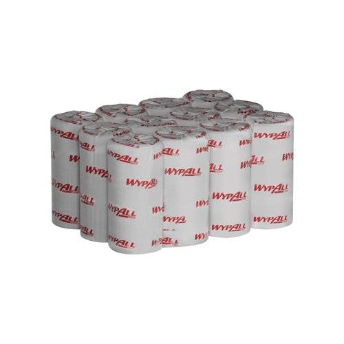WypAll L10 compact wiping paper rolls are single ply and designed for light duty wiping in areas such as food preparation and service surfaces. They are designed for use with the portable WypAll Reach wiping paper dispenser, a portable and enclosed system is designed to keep the centrefeed rolls clean. The single sheet dispensing is designed to minimise contamination whilst encouraging efficient use of the paper wipes. This pack contains six rolls of 165 sheets (1,980 wipes in total).
