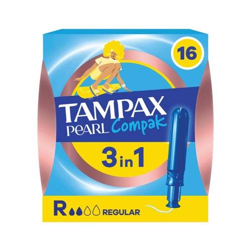 Tampax Pearl Compak tampons offer comfort, protection and discretion. They are free from fragrances and come with a compact and discreet smooth plastic applicator and rounded tip for comfortable insertion. The contoured Anti-Slip Grip makes the applicator easy to hold and position and the MotionFit technology gently expands to fit the body’s unique shape. Suitable for light to medium flow days during your period. Supplied in a pack of 8 (8 x 16 = 128 tampons).