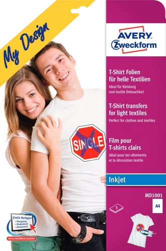 Avery MD1001 210 x 297mm White Fabric Transfers 5 Sheets