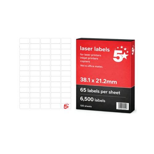 5 Star A4 Sheet Labels 38.1x21.2mm Pack of 6500 FS679676