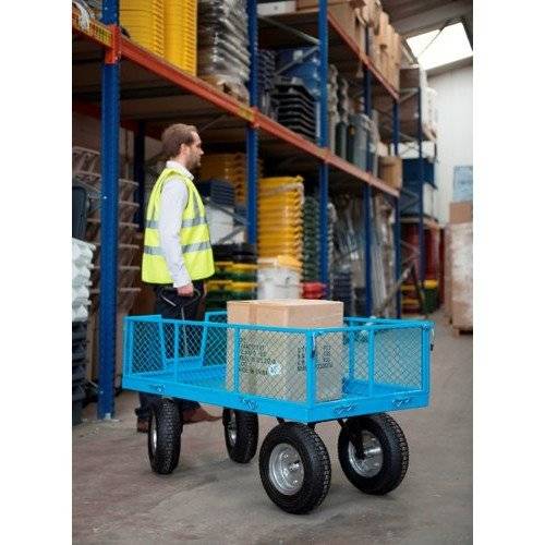 General Purpose Truck; Mesh Base; Mesh Sides & Ends With Pneumatic Wheels; 400Kg; Blue