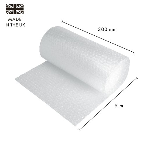 This bubble wrap measures 300mm x 5 metres in length and is suitable for packaging small and large objects, our bubble wrap is made in the UK.