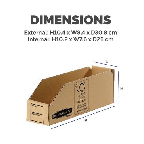 Provide economical storage around your home or office for all types of components, using the Bankers Box Earth Series Parts Bin. Each parts bin features a large labelling area for easy identification of contents at a glance, leaving you free to organise and sort your filing system quickly and easily. These parts bins are environmentally friendly and are manufactured using 100% recycled materials.
