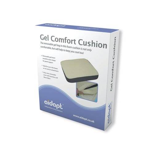 - The removable gel bag in this foam cushion is not only comfortable, moulding to your shape for great support, but will help to keep you cool too. The removable cover is reversible; one side is easy-clean black polyester and the other a luxurious, soft fleece fabric. The Gel Comfort Cushion is ideal for year-round use in the home or car and can also be used on wheelchairs. Cover can be machine washed at low temperature.